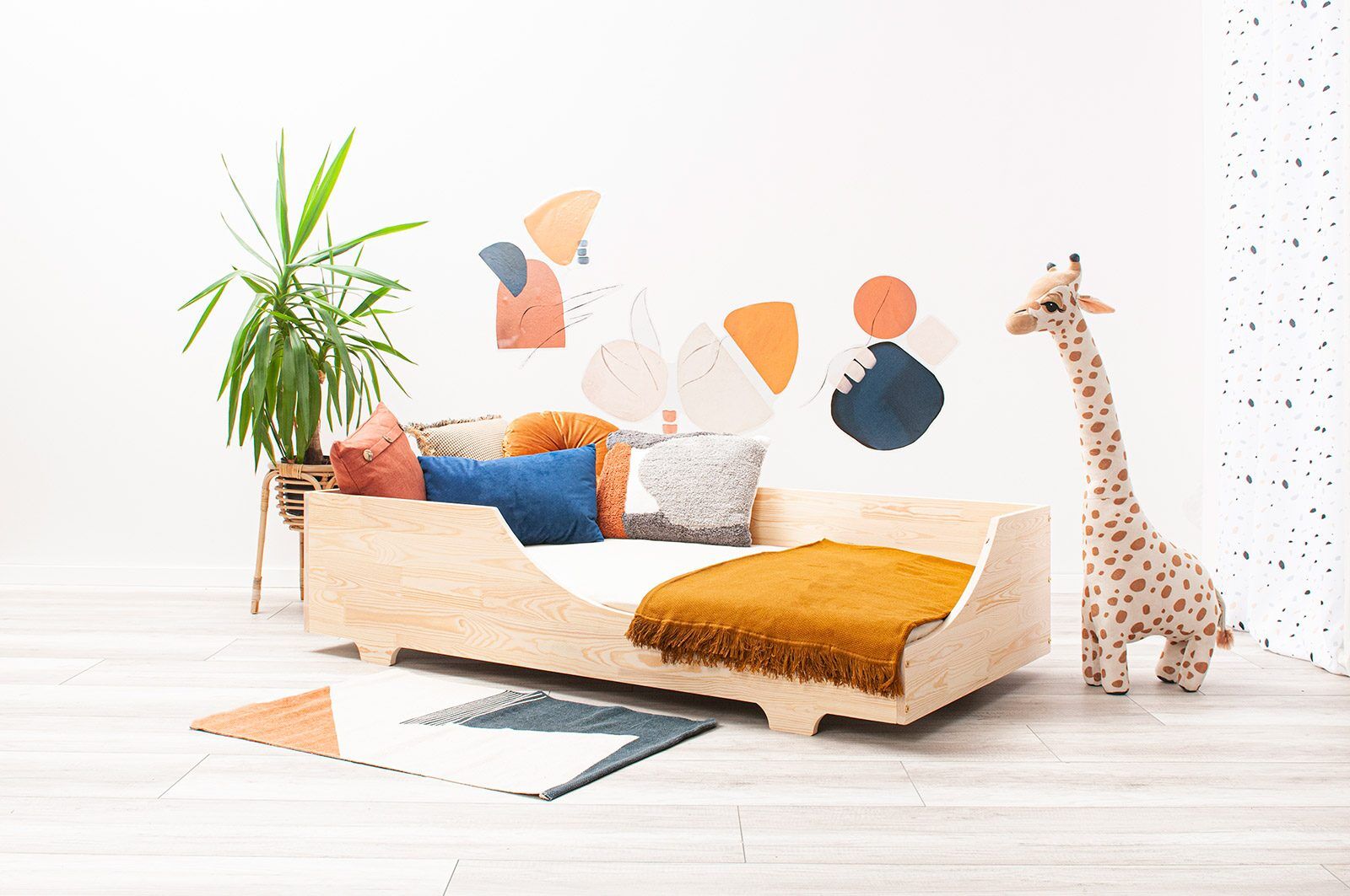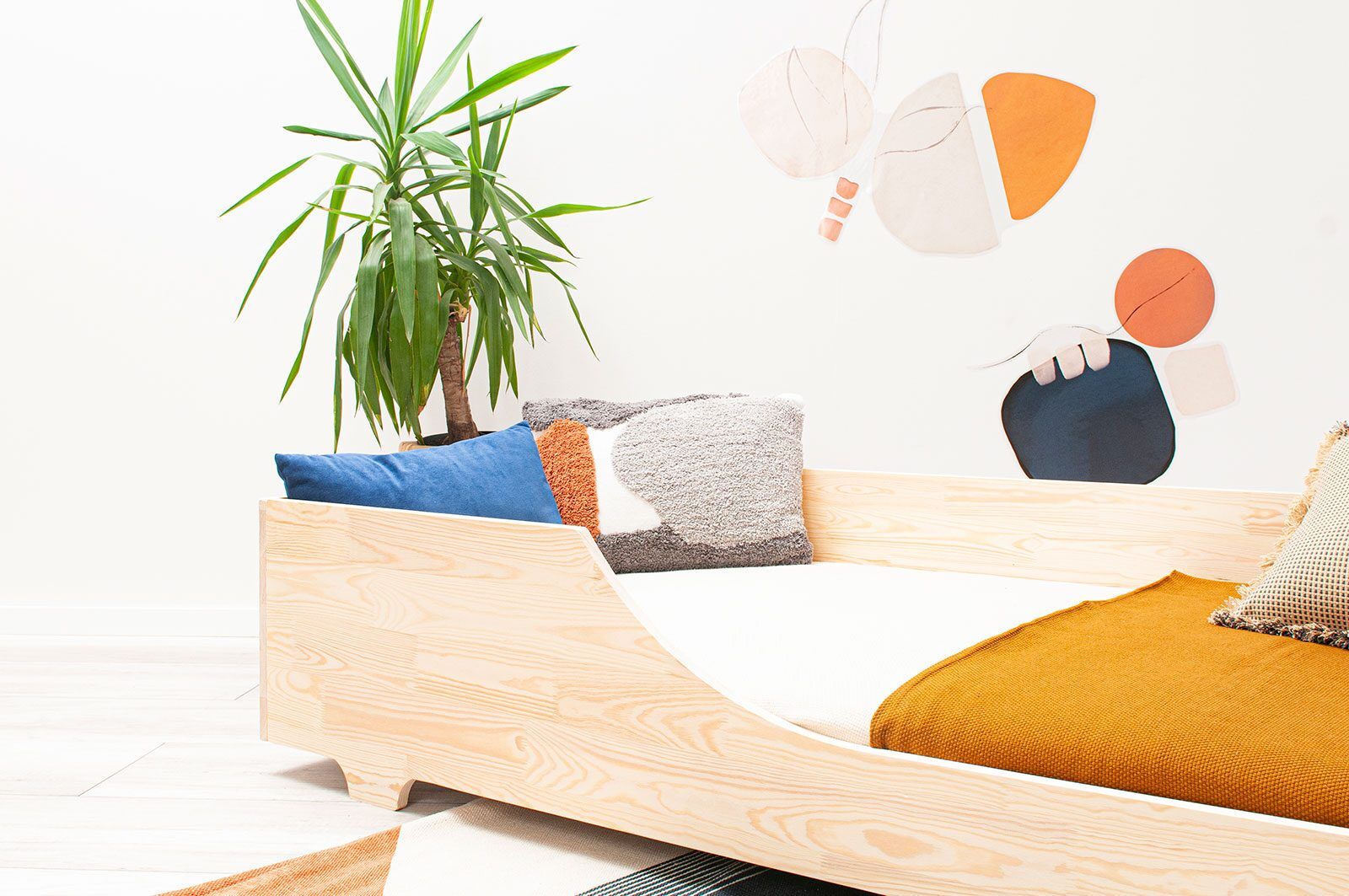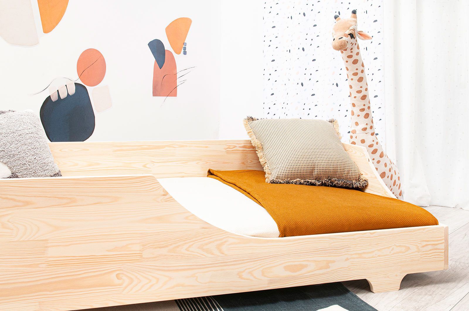Uma cama com um design moderno e intemporal. Feita em madeira de pinho natural, combina perfeitamente num único quarto de criança. O design pouco convencional da cama torna-a uma inspiração para muitas brincadeiras infantis.