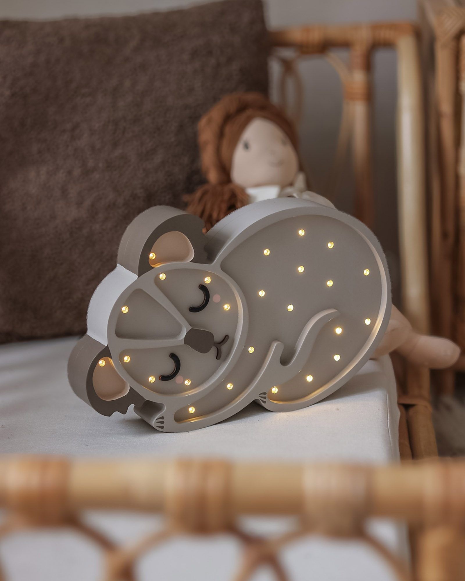 Ajuste o brilho com um comando remoto. Com o comando, pode facilmente controlar a intensidade da luz – dimmer. A configuração mais brilhante é perfeita para as histórias antes de dormir, enquanto a luz mais suave é ideal para adormecer.
