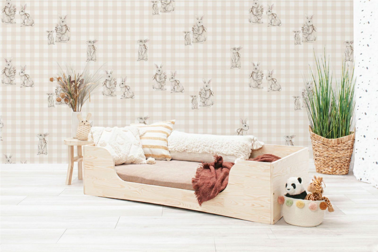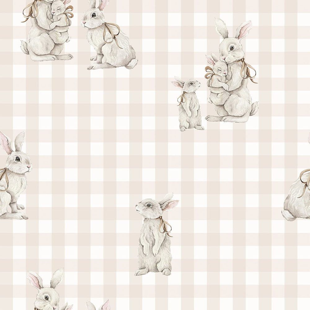 Papel de parede – Coelhinhos reais – Bege xadrez